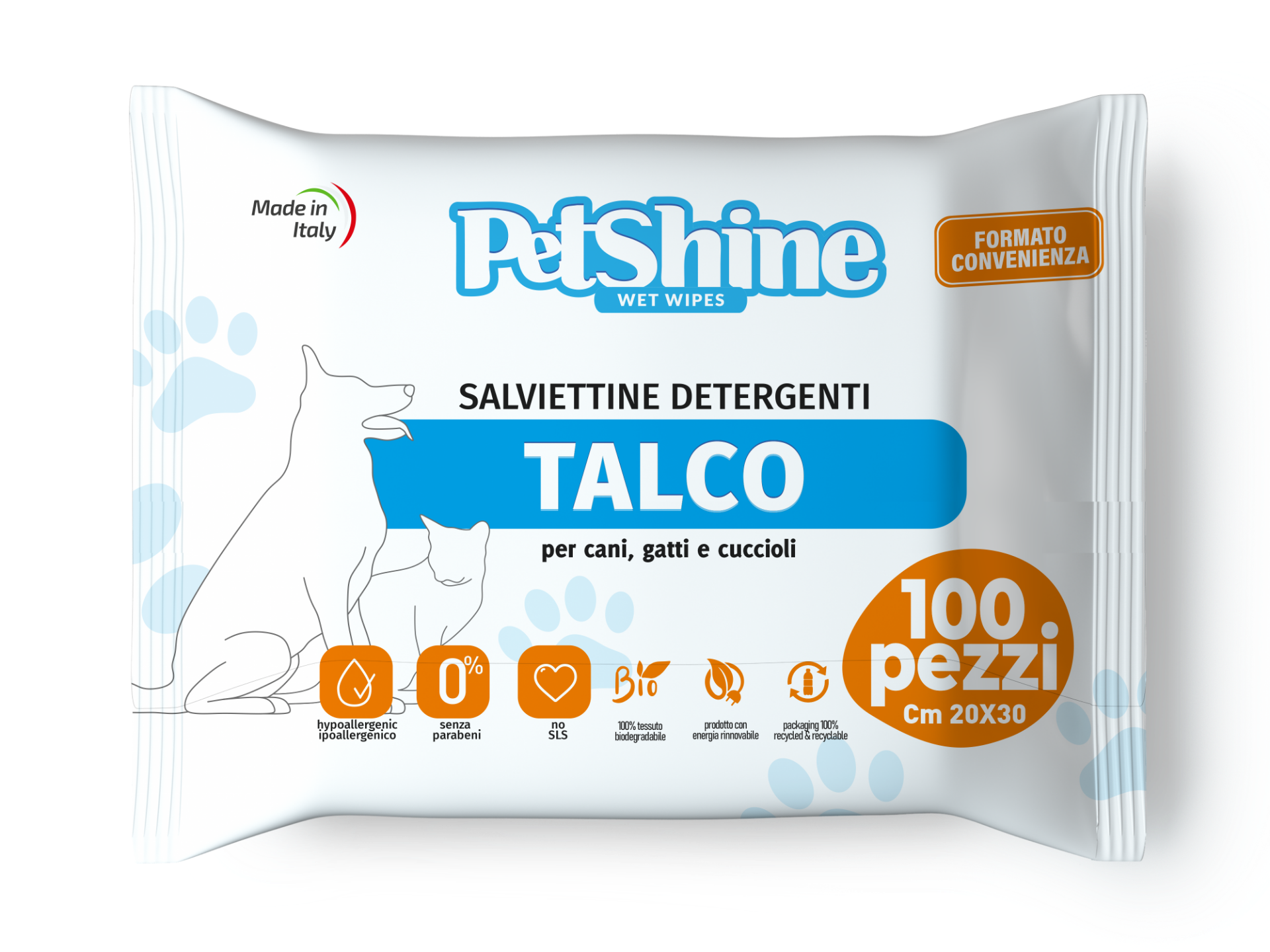 PetShine cleansing wipes have been created for daily care of your pet; they have an effective deodorizing and cleansing action. Soaked in a perfumed, alcohol-free solution, they delicately clean and freshen your pet.