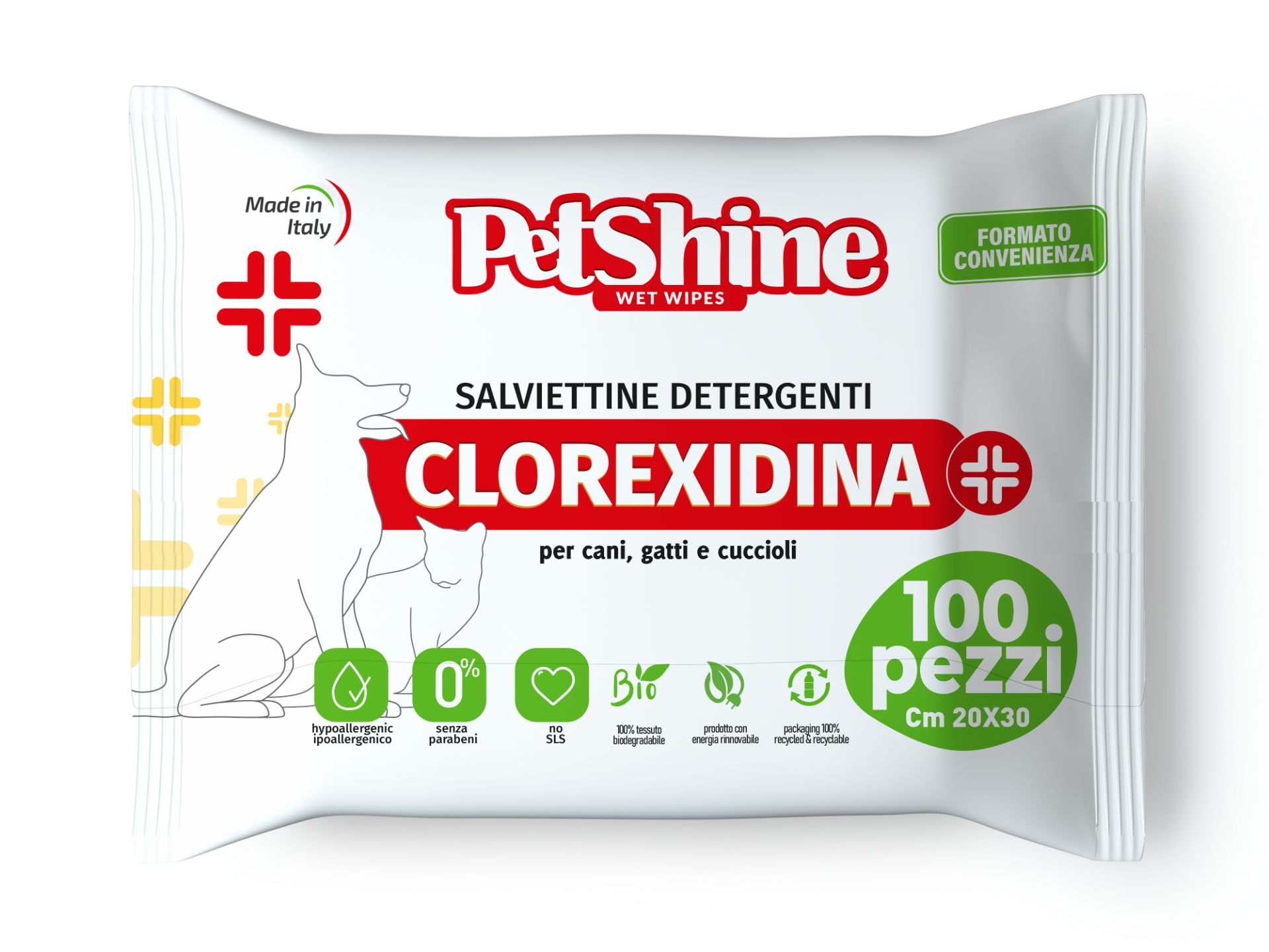 PetShine cleansing wipes have been created for daily care of your pet; they have an effective deodorizing and cleansing action. Soaked in a perfumed, alcohol-free solution, they delicately clean and freshen your pet.